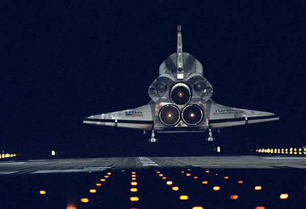 过去几十年里摄影师拍摄到大量精美的航天飞机发射照片,但人们看到这张照片将会十分惊讶。亚特兰蒂斯号航天飞机的飞行角度和喷射火苗有助于呈现375000磅推进力的真实状况。该航天飞机于1988年12月2日发射 ,执行STS-27任务。