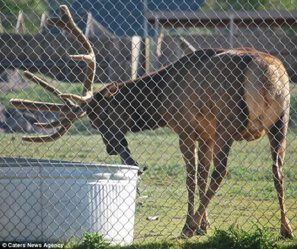 凯特继续表示:“我们看得出它很想把脑袋伸到水槽里以便能叼住那只小土拨鼠,但是它的大犄角使它很难做到。一开始没人知道为什么这个家伙竟然会拼命想要把脑袋伸进水里,然后又把蹄子也伸进水里,我们不知道它在搞什么鬼,直到我们看到它从水槽里叼出来的土拨鼠,我们才恍然大悟。”