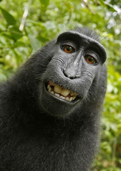 这张有意思的照片拍摄于印度尼西亚,是一只黑冠猕猴做鬼脸的样子。但这还不是关键,关键在于这张照片其实是这只猕猴自拍的!