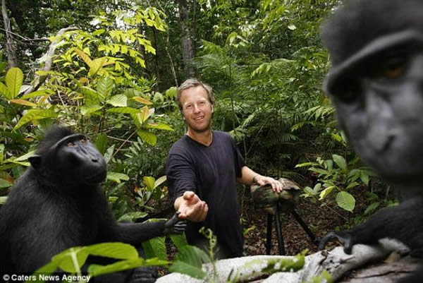 斯莱特来自英国格洛斯特郡,他正在印尼苏拉威西岛北部的一个国家公园内旅行,就在那里他遇到了这一群不寻常的热情伙伴。黑冠猕猴又称苏拉威西猴,非常珍稀,甚至已经濒临灭绝。在这里附近设立有一个科学研究中心,来自荷兰的科学家们在这里开展对这种动物的研究保护工作。