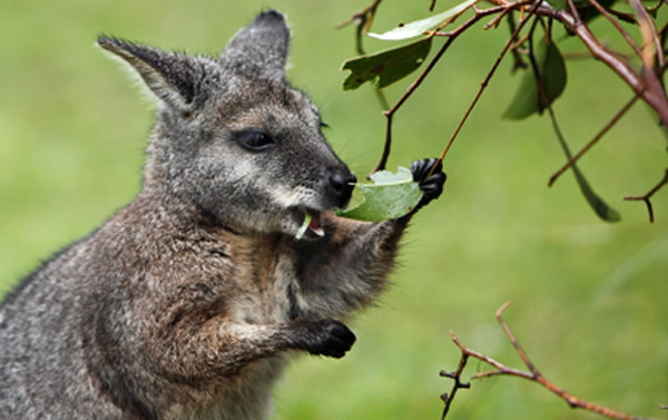 牛在消化食物后会产生甲烷,这是一种有效的温室气体,然而当袋鼠大快朵颐后,它们的消化道中却几乎不见甲烷的踪影。新的研究表明,这种差别归根结底缘于一类细菌。科学家在对小袋鼠——一类体型相对较小的袋鼠——进行研究后,分离出一类肠道细菌Wallaby Group 1 (WG-1)。当研究人员在一种营养液体培养基中培养这种细菌后,他们发现,作为消化过程的最终产物,这种微生物会形成一种名为琥珀酸盐——而非甲烷——的化合物。由于琥珀酸盐并非是一种温室气体,因此科学家希望对WG-1进行的更加深入的研究,能够帮助研究人员找到一种方法,最终减少牲畜产生的包括甲烷在内的温室气体。