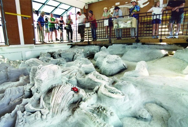 美国火山灰化石床州立国家公园是世界上唯一一处可以看到如此众多的,呈立体保存的原位骨骼化石。每年夏天,众多古生物学者来到这里进行发掘,游客则可以在一旁观看整个发掘过程,并向学者提出疑问。同时,化石的预处理过程也向公众开放。