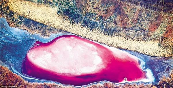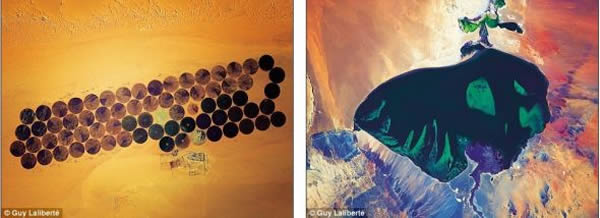 利比亚的农业灌溉系统(左)和蒙古国境内的一个湖泊(右)