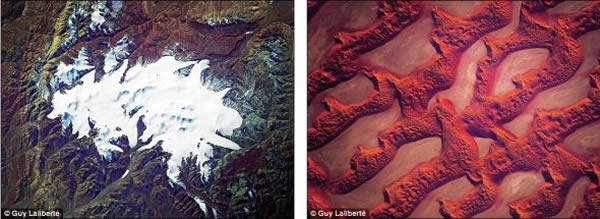 西藏北部的雪峰(左)和阿尔及利亚境内的撒哈拉沙漠(右)