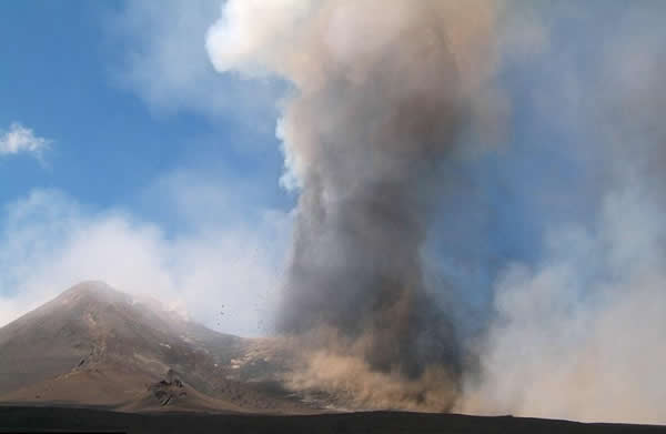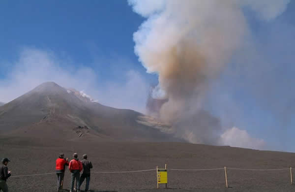 埃特纳火山位于意大利西西里岛东岸,它高约3295米,是欧洲最高的活火山。它的最近一次喷发是在5月11日,当时卡塔尼亚机场也曾被迫关闭。该火山最猛烈的一次喷发发生在1669年,持续了4个月之久,喷出的熔岩约达7.8亿立方米,其破坏程度十分严重,造成卡塔尼亚等附近城市2万人丧生。