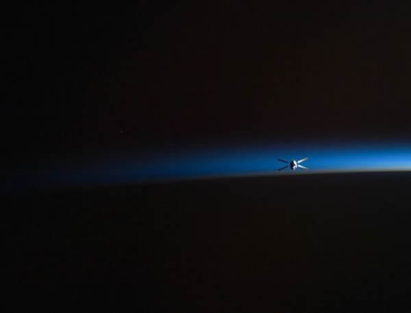 6月20日,欧洲航天局的“约翰内斯·开普勒”号自动货运飞船离开国际空间站。照片中,飞船出现在地球地平线上方,阳光从背后将其照亮。21日,这艘无人飞船满载垃圾——包括宇航员的尿液——翻着跟斗返回地球,在太平洋一偏远地区上空化作一个火球。