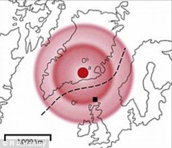 这个地貌位于北大西洋奥克尼-谢特兰德岛(Orkney-Shetland)西部海域海底1.2英里(约合1.9公里)处,拥有一系列一度属于山脉的山峰以及8条大河。科学家表示,这个地貌一度高出海平面0.6英里(约合965米),可能曾与现在的苏格兰相连,甚至曾一度延伸到远至挪威的地区。