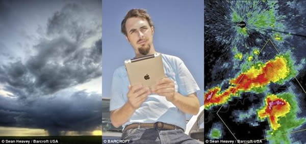 世界顶级风暴猎人都会在最新的尖端科技气象设备上投入数百万英镑,但是电工肖恩-希维只用6英镑(9.70美元)下载一个应用软件到他的iPad上,就拍摄到这些令人惊叹的照片。