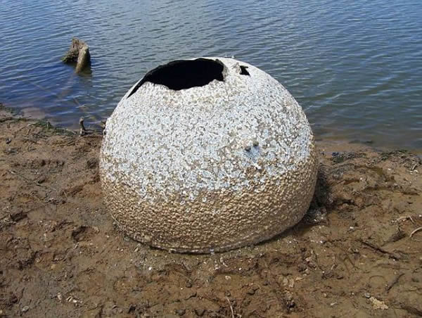 这就是在德州纳柯道奇县,随着水位下降暴露出来的疑似航天飞机残骸,直径约1.2米