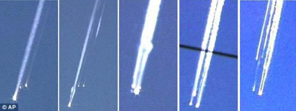 这是当时拍摄到的航天飞机解体瞬间组图