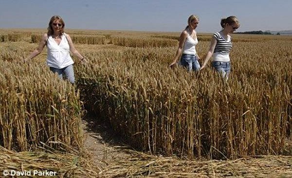 几周前,巨石阵附近出现一个新的麦田怪圈。7月初,艾顿巴恩斯附近的白马山脚下也出现一个麦田怪圈。每次出现麦田怪圈,可怜的农民都要为此付出代价。艾顿巴恩斯的蒂姆-卡森自1990年以来便与麦田怪圈结缘,他的田地里共出现过125个麦田怪圈。2011年,由于燃料价格高居不下加之化肥价格上涨,麦田怪圈让农民面临更大的损失。据悉,干旱导致麦田减产25%。