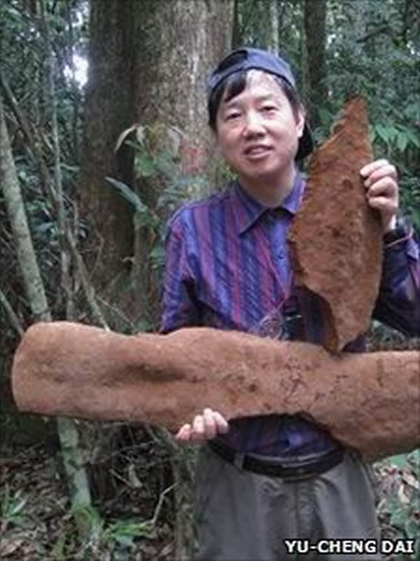 研究人员说,在中国一棵倒掉的树下发现了一个重半吨、长33英尺(约合10米)的真菌子实体。这是迄今为止发现的最大的子实体———相当于其它真菌类型中的蘑菇。