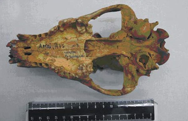 据悉,这具狗头骨化石发现于西伯利亚地区阿尔泰山脉的一处山洞中,保存完好。这块头骨化石来自于最近一次冰河时期之前,它表现出的特征与现代犬类有很大不同。