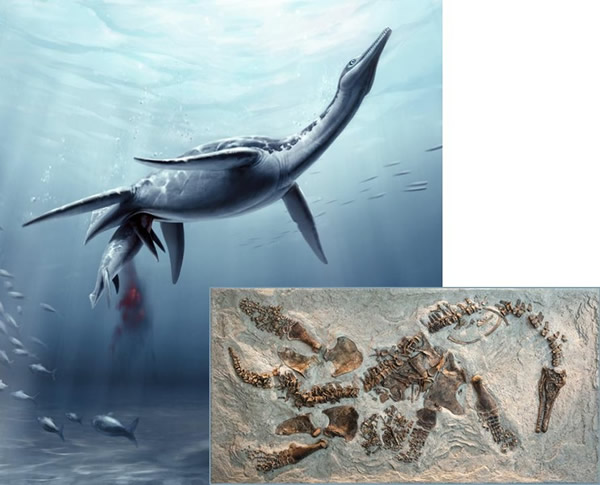 Robin O'Keefe表示,随后一切变得明朗了,在这具5米长的蛇颈龙妈妈的腹中有一个生有尖牙小家伙——而不是一顿美餐。