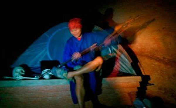 在“古墓哥”自己上传到微博的照片中记者看到,“古墓哥”爬上了悬棺古墓的二层洞穴后,将野营的帐篷扎在一具石棺上面,并用自带的户外炊具做了一顿晚餐。晚餐过后,“古墓哥”穿上了一套自带的道士服,随手舞了套“残影剑法”。次日一早,“古墓哥”趁景区工作人员未上班,匆匆收拾行李,从石棺内下到山下。
