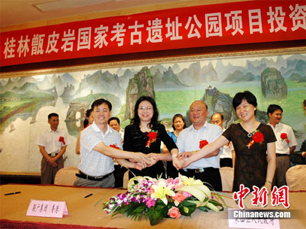18日,赋予“学术研究、文化教育、发展旅游”三大功能的甑皮岩国家考古遗址公园项目投资建设签约仪式在桂林举行,该项目由香港联广集团投资2亿元人民币建设,计划三年基本建成。