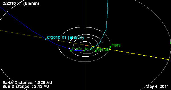 埃里宁彗星(Elenin)目前正运行在内太阳系并将于今年10月16日过近地点。就和历史上多次出现过的谣言满天飞一样,这一次互联网上再次出现了末日论甚嚣尘上的场面,很多人疯狂地传递着这样一个消息,说这颗彗星就是传说中的死亡之星“尼比鲁”(Nibiru),而美国宇航局明知人类即将毁灭却故意隐瞒真相。