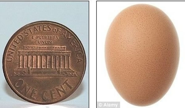 美国一只鸡产下世界最小鸡蛋 来源: 神秘的地球 时间:2011年8月24日 14:19 这颗袖珍鸡蛋仅长2.1厘米,比一枚一美分硬币大不了多少 美国西弗吉尼亚州的农场主唐尼-罗素近日称,他的鸡产下了世界最小的鸡蛋。 据报道,这颗鸡蛋2.1厘米长,重3.46克,比一美分硬币大不了多少。 据悉,产下这颗迷你鸡蛋的鸡妈妈一直正常产蛋,产下这么小的蛋还是第一次。 目前,吉尼斯世界纪录登记在案的最小鸡蛋长2.7厘米,不过罗素说,他不确定要不要申请世界纪录。他想将这个迷你鸡蛋保存起来,以他孙子的名字命名。 中新网 上一篇 下一篇 TAG: 鸡 鸡蛋 美国