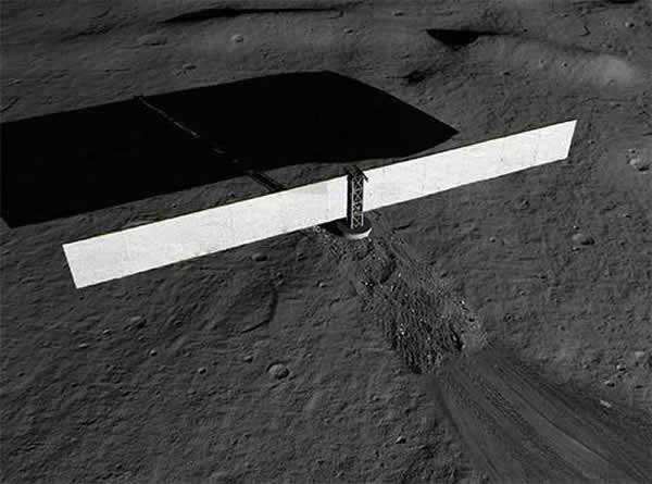 艺术概念图,展示了月球表面的核裂变地面发电系统