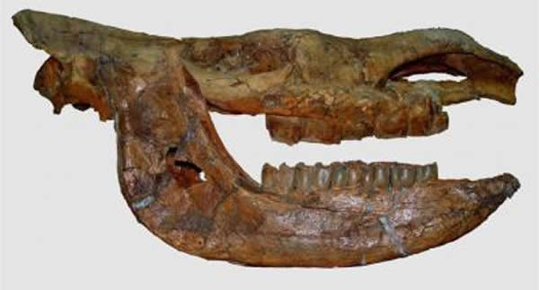 Coelodonta的头骨和颚的正模标本的数码混合照片