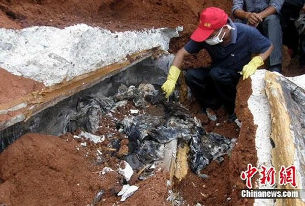 9月12日,星子县泽泉乡的柏叶洪村一砖厂在取土时,无意中发现一座古墓。当工人从被挖破的棺木里发现有尸体时,立即停止了挖掘。据当地村民介绍,当时这具尸体看起来没有完全腐化,旁边有些布料保存较好。