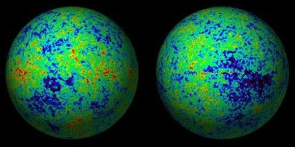 当然,对宇宙学模型提出质疑,目前也仅是一个假设,或者说是一种对1a型超新星观测速度上得出结论的推测,我们同样也可以做出“安全的假设”,迄今为止对宇宙的认识还不存在颠覆性的理论发现。宇宙微波背景辐射的球形分布图,图1中分别显示了两个半球的微波背景辐射情况。