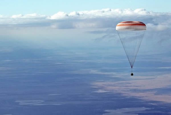 “联盟”号返航(图片来源:Sergei Ilnitsky, Pool/AP)