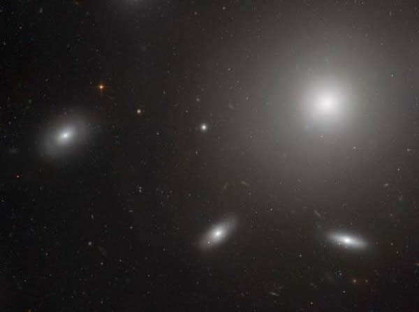 照片由美国宇航局/欧洲航天局的哈勃太空望远镜拍摄,9月19日对外公布,展现了后发座星系团。星系团中的星系好似萤火虫一样舞动。右上部最明亮的星系是NGC 4874,这是一个巨型椭圆星系,体积是银河系的10倍左右。NGC 4874引力极大,天文学家最近发现强大的引力允许这个星系“扣留”一大群球状星团和一些矮星系。