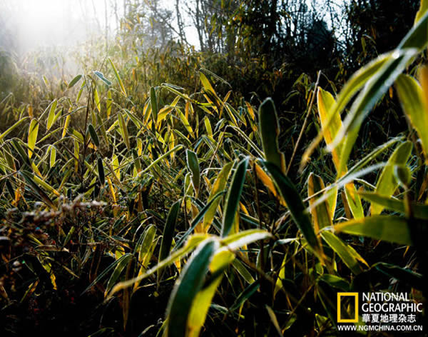 这熟悉的声音,伴随着混杂了湿润的腐植土、清新的竹叶以及动物激素的气味,仿佛突然触发了我脑海中沉睡已久的某个开关,身体顿时轻松起来,两条腿由着这感觉指引,飞奔上了山,很久没有爬山也丝毫不觉得累。没多久我站在了一个小山梁上,四周寂静无声,隐隐之中感觉到似有什么要发生。于是,我在地上坐下来,仔细倾听。竹林里非常安静。我屏住呼吸,在四周茂密的竹林间一点点搜寻。突然间,一束目光将我击中,迎着看去,在距我不足五米处,有一双明亮的眼睛在竹叶的缝隙中若隐若现,我的心怦怦地跳了起来,兴奋的心情有如1985年第一次在野外见到熊猫一样!