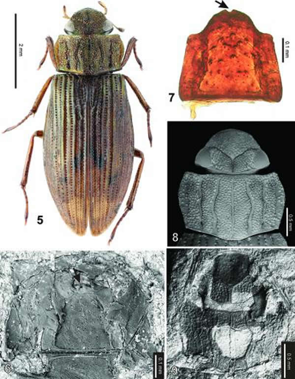 在研究延续时间较长的化石昆虫类群时,因为很多化石缺少细节的保存,这也是古生物学家们经常面临的问题。不同于现生昆虫物种,大部分的鉴别特征是依靠诸如雄性生殖器形状或其它细节,昆虫化石往往缺少这方面的保存。此次科学家所发现的水生甲虫化石虽然没有保存昆虫生殖器信息,但却幸运的保存了沟背水龟虫前胸背甲上所特有的颗粒状结构,这也是沟背水龟虫非常重要的鉴定特征。