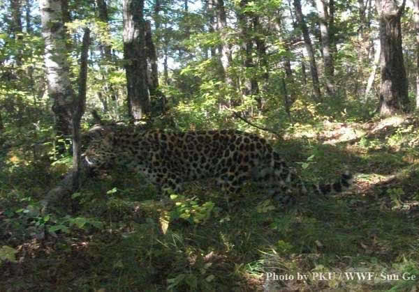 经过世界自然基金会(WWF)专家确认,照片中是国家I级保护动物东北豹。被拍到时,这只东北豹正在山梁上活动。照片于9月19日13时30分拍摄,地点为汪清林业局西南岔林场。