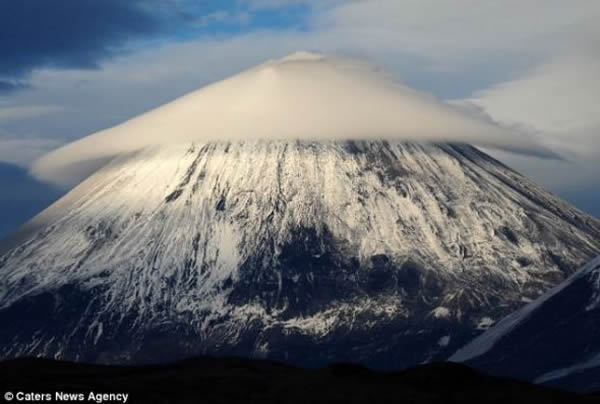 这朵荚状云在俄罗斯东部的留契夫斯卡雅山上空形成美得令人窒息的画面