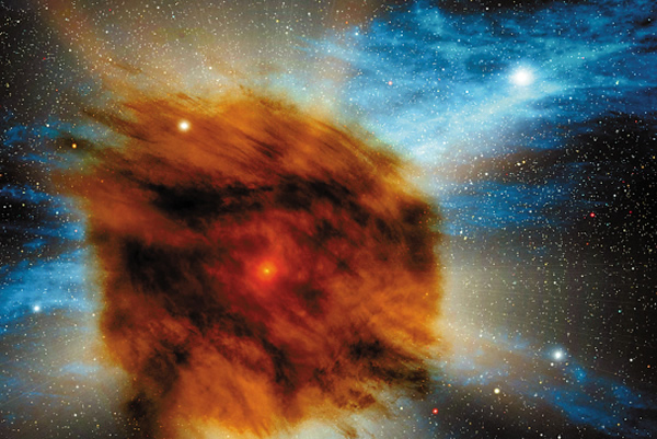 2010年10月,NASA太空望远镜拍摄到一颗巨大的超新星,它的光芒被数百年前自身爆炸产生的灰尘和气体遮掩