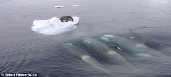 皮特曼博士就职于加利福尼亚州的国家海洋与大气管理局。他说:“虎鲸很清楚如何将海豹弄下浮冰,它们知道应该采取何种战术,通常都能成功地将海豹弄下水。幸运的海豹在落水之后仍然成功逃脱,但这种情况非常罕见。根据我们对虎鲸的研究,这是一种懂得进行互动的动物,它们采用的有效的捕猎技术让我们感到吃惊。”