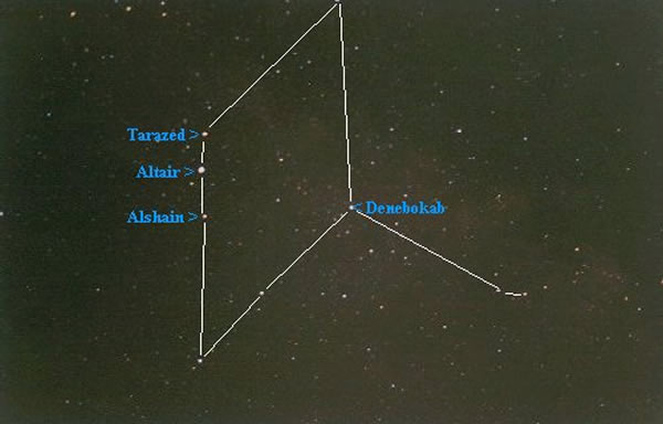 天鹰座的主星河鼓二(牛郎星),在中国与天琴座的织女星,构成了七夕的传说。