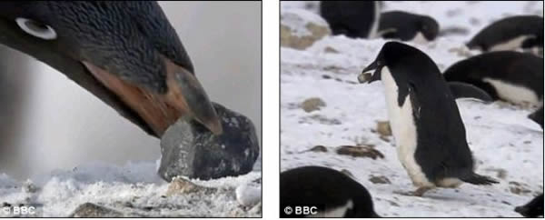 筑得巢最好的雄企鹅,引起异性注意的机会会更大,因此在这种斯巴达式的环境中,拥有最好的石头比什么都重要