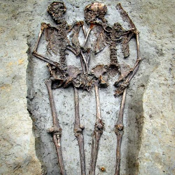 美国北卡罗来纳州大学生物人类学家克里斯蒂娜-基尔格鲁维(Kristina Killgrove)说:“在古代,家庭配偶同时死亡合葬的现象并不少见,像黑死病等流行性传染病曾肆虐欧洲,一位家庭成员感染传染病,则会导致其它家庭成员都感染死亡。”2007年,考古学家曾挖掘发现一对合葬尸骨,其埋葬历史可追溯至5000-6000年前,位于邻近意大利曼图亚市一处新石器考古遗址,距离维罗那市以北25英里。这两具尸体是相拥而卧,看上去他们生前感情非常好,尽管随着时间的推移尸体都已腐烂,但仍然两人相依为伴。