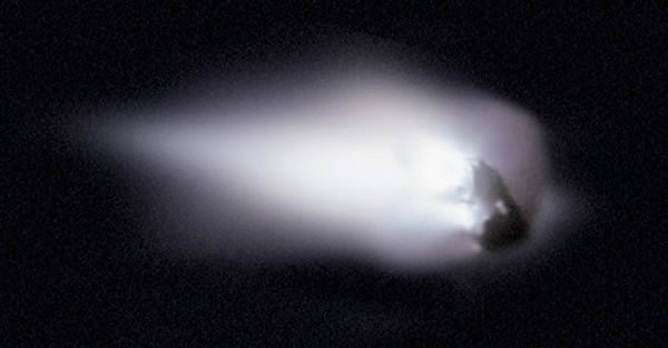 乔托探测器在其白色灰色罩保护下,以68公里时速接近哈雷彗星核心区域。