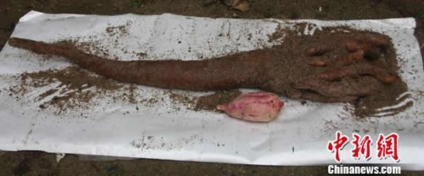 26日,河南省西峡县五里桥镇西庞营村民庞洪杰,将自己亲手挖出的一棵重达6.28公斤的“佛手”状巨型野生山药捐赠给了当地一家制药公司。因体形庞大而罕见,这棵山药将被制成中药材标本在标本室展出,并永久收藏。