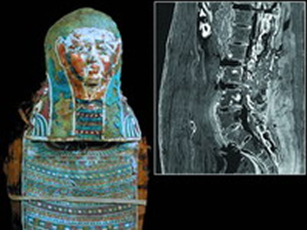 对古埃及木乃伊的腰椎进行的高分辨率CT扫描发现了小而圆的病灶。