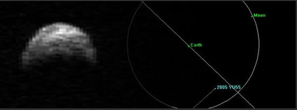 这颗名为“2005 YU55”的小行星,体积相当于一艘航空母舰,正逐渐逼近地球,预料将于地球与月球之间掠过,与地球最近只相距30万公里,以银河概念而言就等于一发之差。小行星被NASA分类为“近地球物体”,是200年来最接近的一次。上一次有如此巨型的小行星接近地球已是1976年,当时没有引起哄动,皆因NASA看漏了眼。