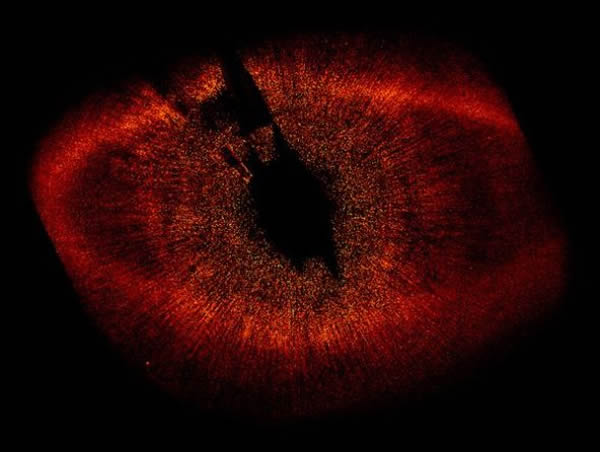 2008年,天文学家将哈勃太空望远镜对准“索隆魔眼”并发现一颗新行星。“索隆魔眼”这个名字来源于魔幻大片《指环王》,实际上是指南鱼嘴,它是南鱼座中最亮的一颗星,距地球大约25光年。其炽热的“虹膜”实际上是一个形成行星的物质构成的环,环绕这颗恒星。环内的一个小亮点是类似木星的行星南鱼嘴b。这幅照片是第一幅展现环绕另一颗恒星的行星可见光照片。