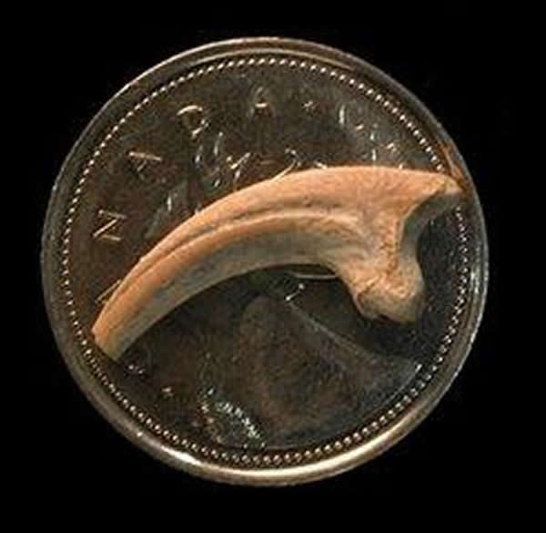 和迅猛龙一样,这种小型恐龙也有尖锐的爪子。起先,这些小爪子被认为是未成年恐龙的。朗里奇说:“但研究骨盆后,我们发现,髋骨是连在一起的,这种情况只能发生在发育完全的成年动物身上。”之前在北美发现的最小食肉恐龙大小和狼差不多。这种动物叫作Hesperonychus elizabethae,这一名字是为了纪念发现这一标本的加拿大古生物学家伊丽莎白·尼科尔斯而取的。Hesperonychus的意思是“西部爪”。而在这种恐龙身上也显示出了鸟类的特征,这种恐龙会爬树并且肢体下长满了羽毛,它们从树上下来时可能会利用羽毛作为缓冲。