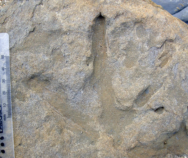 这些足迹来自不同体型的兽脚类恐龙,小到一只鸡的身形,大到一台起重机那么庞大。兽脚类恐龙是两足恐龙,现代鸟类的祖先,主要是食肉型恐龙。