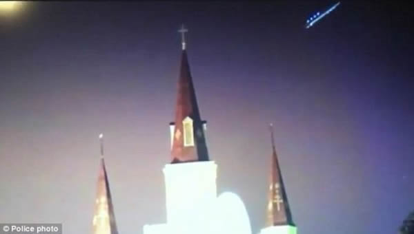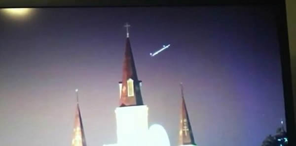 美国新奥尔良,一个不明飞行物(UFO)出现在圣路易斯大教堂上空
