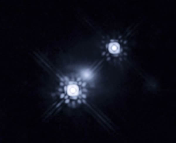 但是此次哈勃空间望远镜却成功地分辨出了一个远在185亿光年之外黑洞周遭的尘埃盘结构,不过这纯粹是借助好运,因为有一个巨型星系恰好位于地球观察视线和类星体之间。这个巨型星系的强大引力场弯曲了来自类星体的光线,使其集中到望远镜中,从而在观察者看来似乎其光线出现了增强。这就是所谓的宇宙引力透镜效应。