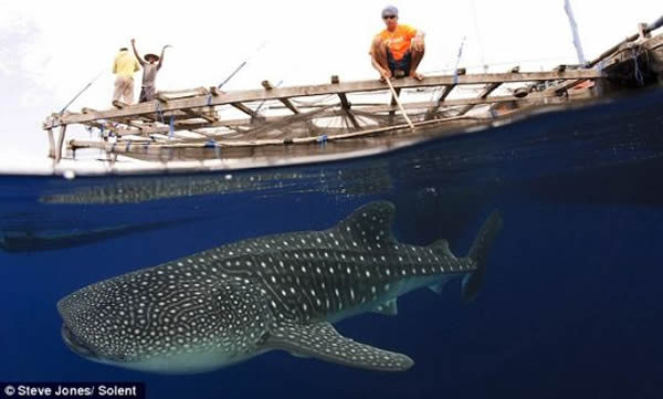 水下摄影师史蒂夫-琼斯用了5天时间在印度尼西亚西巴布亚拍摄鲸鲨,通过一幅幅精彩的照片记录下鲸鲨与当地渔民之间形成的独特关系。当地渔民将这种庞然大物当成朋友对待,虽然它们经常偷鱼吃。