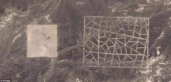 谷歌地图卫星在扫描高空中国戈壁沙漠时发现到一系列令人惊异的神奇巨型图案。