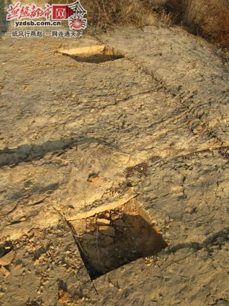 近日,记者在河北滦平县平坊乡偏岭村看到,该处的恐龙化石脚印风化和人为破坏严重,如不采取有效措施,将有被人切割走或是风吹日晒风化掉的危险。