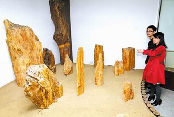 湖北大学80周年校庆期间,一部分化石木被运至校博物馆展览,据博物馆副馆长鲁双清介绍,这些化石木的内部结构保存完好,有的树型完整,纹理、年轮、树节都很清晰,远看是木,近看是石,是一项重要的文化载体,博物馆将通过日后展览给人以启示,实现其科普教育。另一部分化石木则存放在资环学院化石木陈列馆,资环学院院长李兆华教授介绍,学院将采取“保护为主”的方式,最大限度地保护好这批宝物。